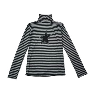 スターモチーフが印象的なボーダー柄のハイネックトップス。