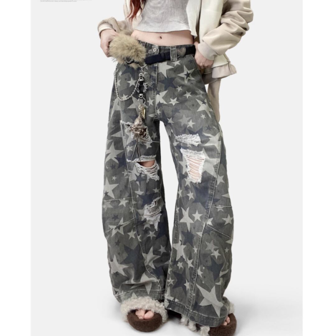 かわいい星柄が特徴のカーブデニムジーンズ。
