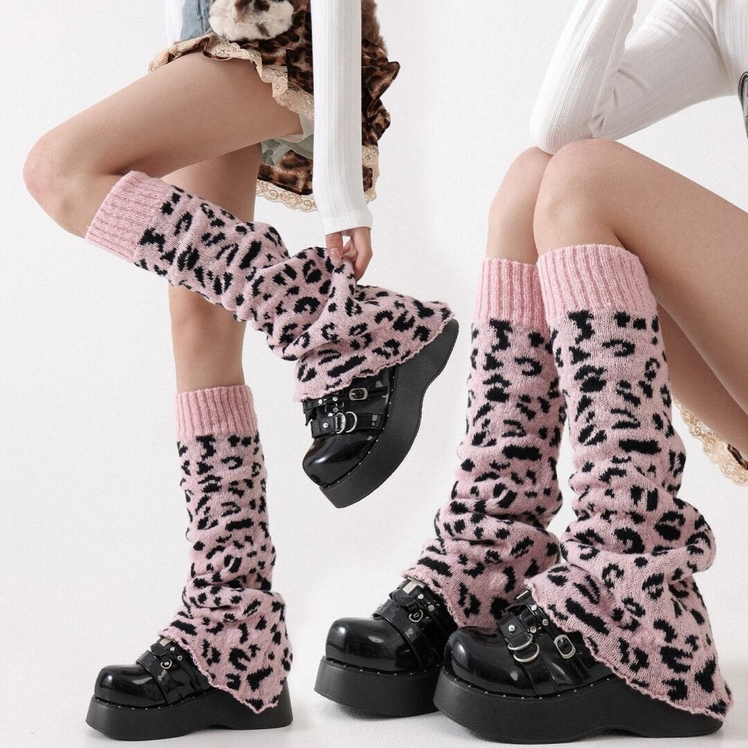 柔らかな肌触りが魅力のピンクレオパードレッグウォーマー。