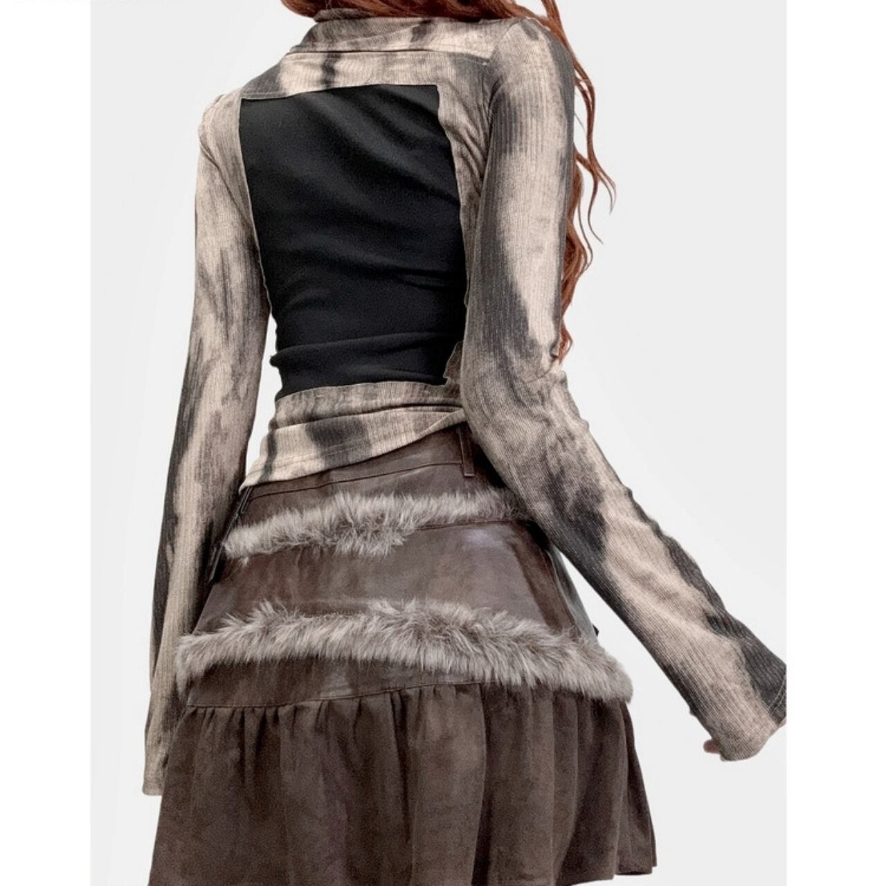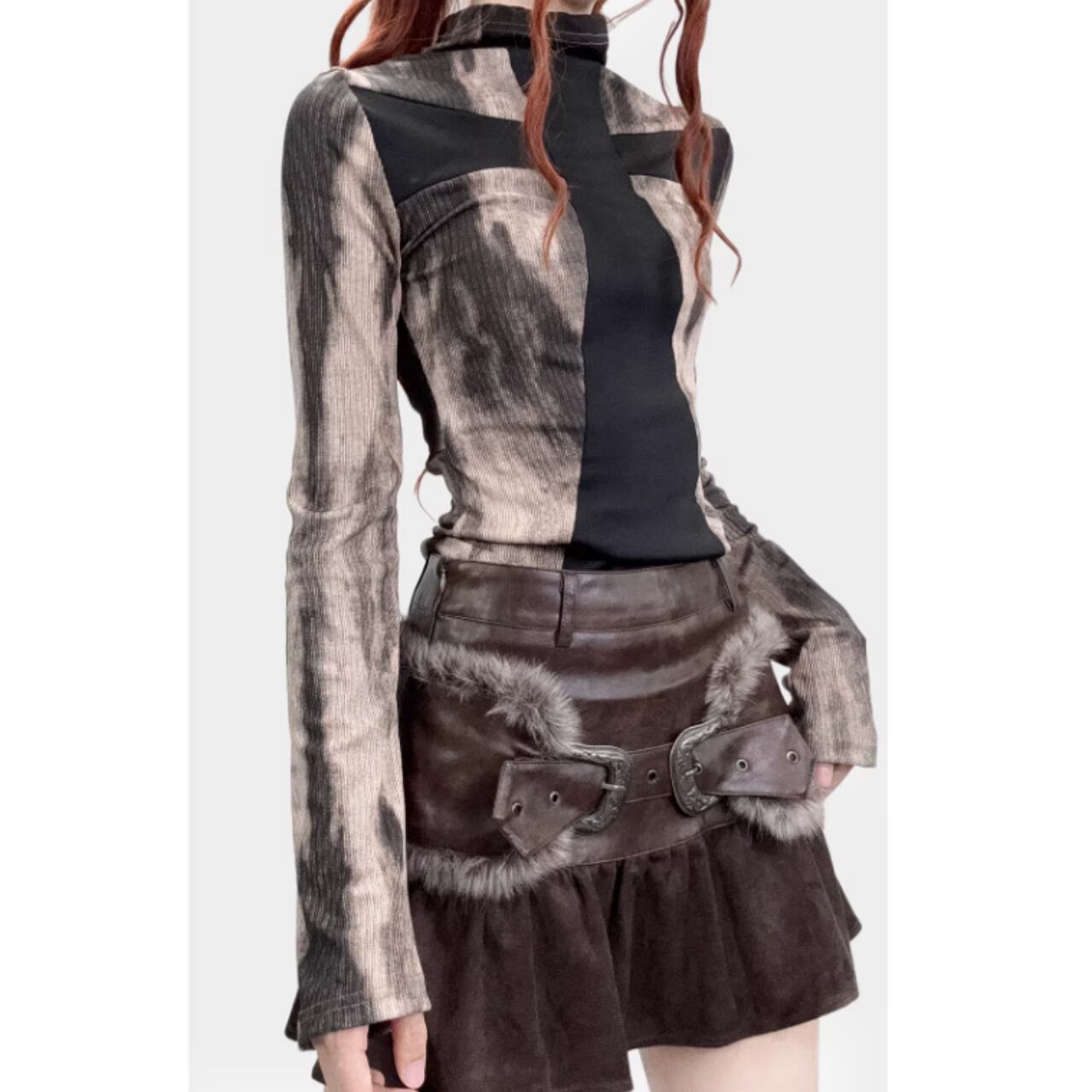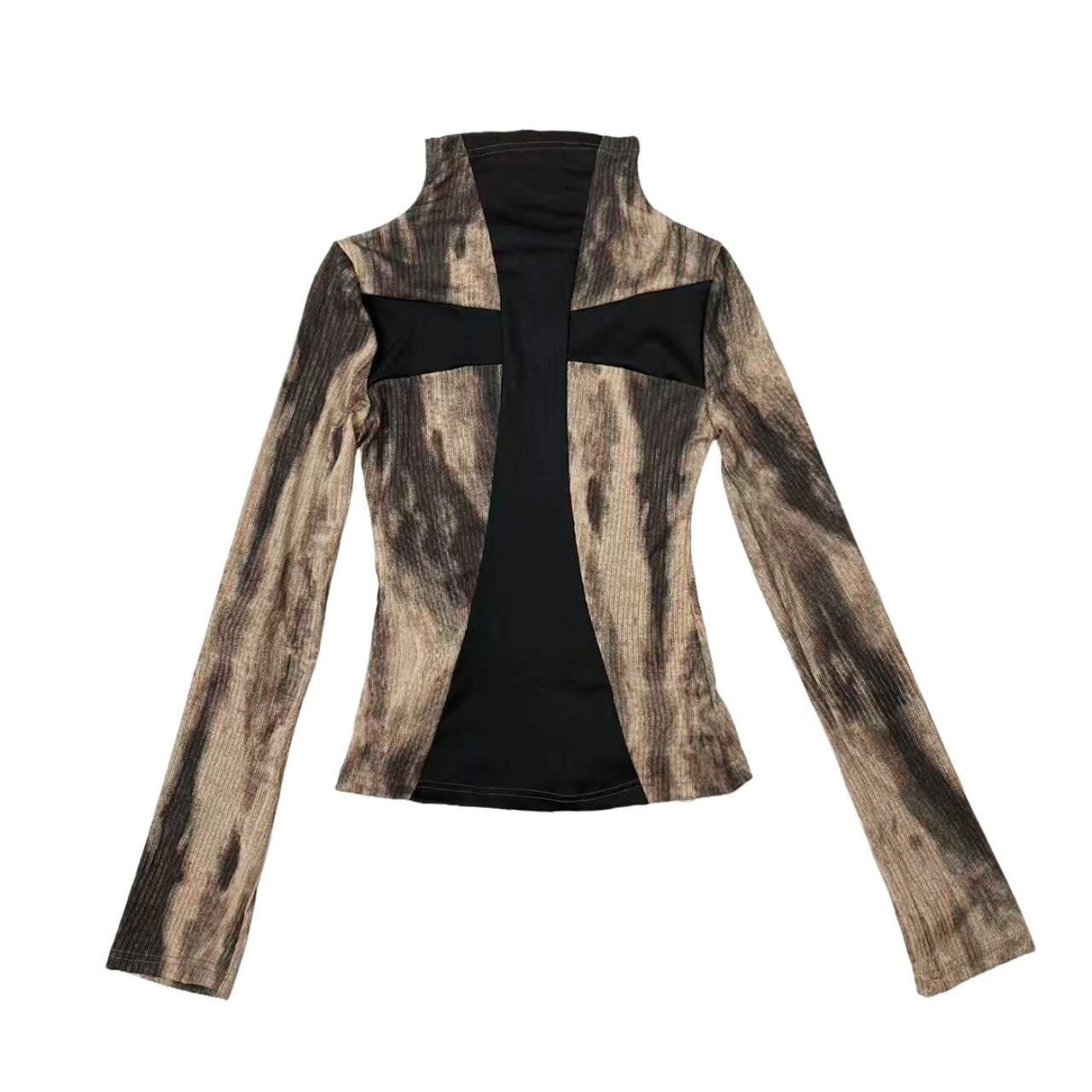 ドラマティックな印象を与える大きなクロスモチーフが特徴のハイネックトップス。