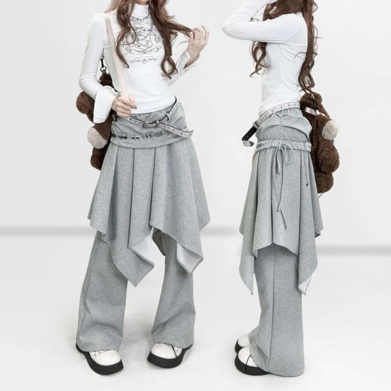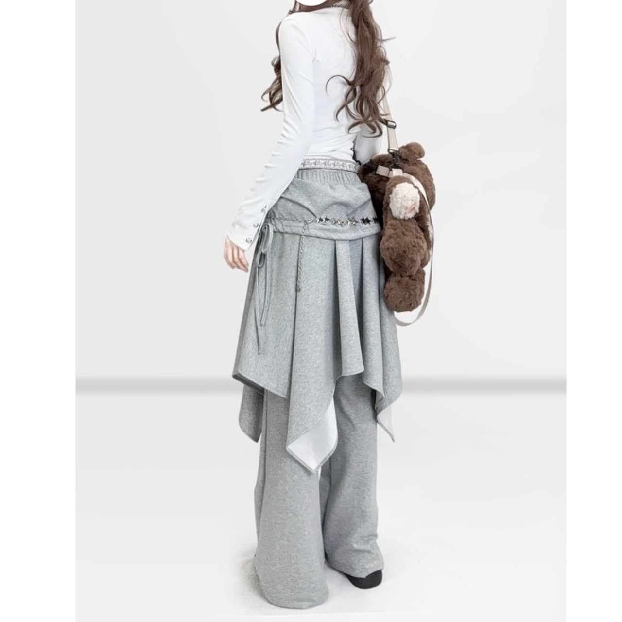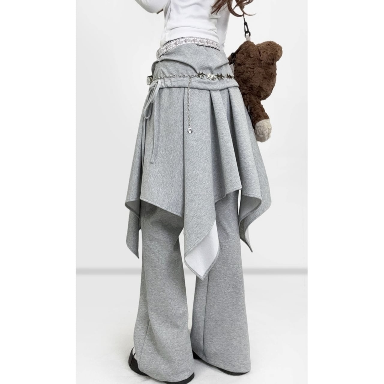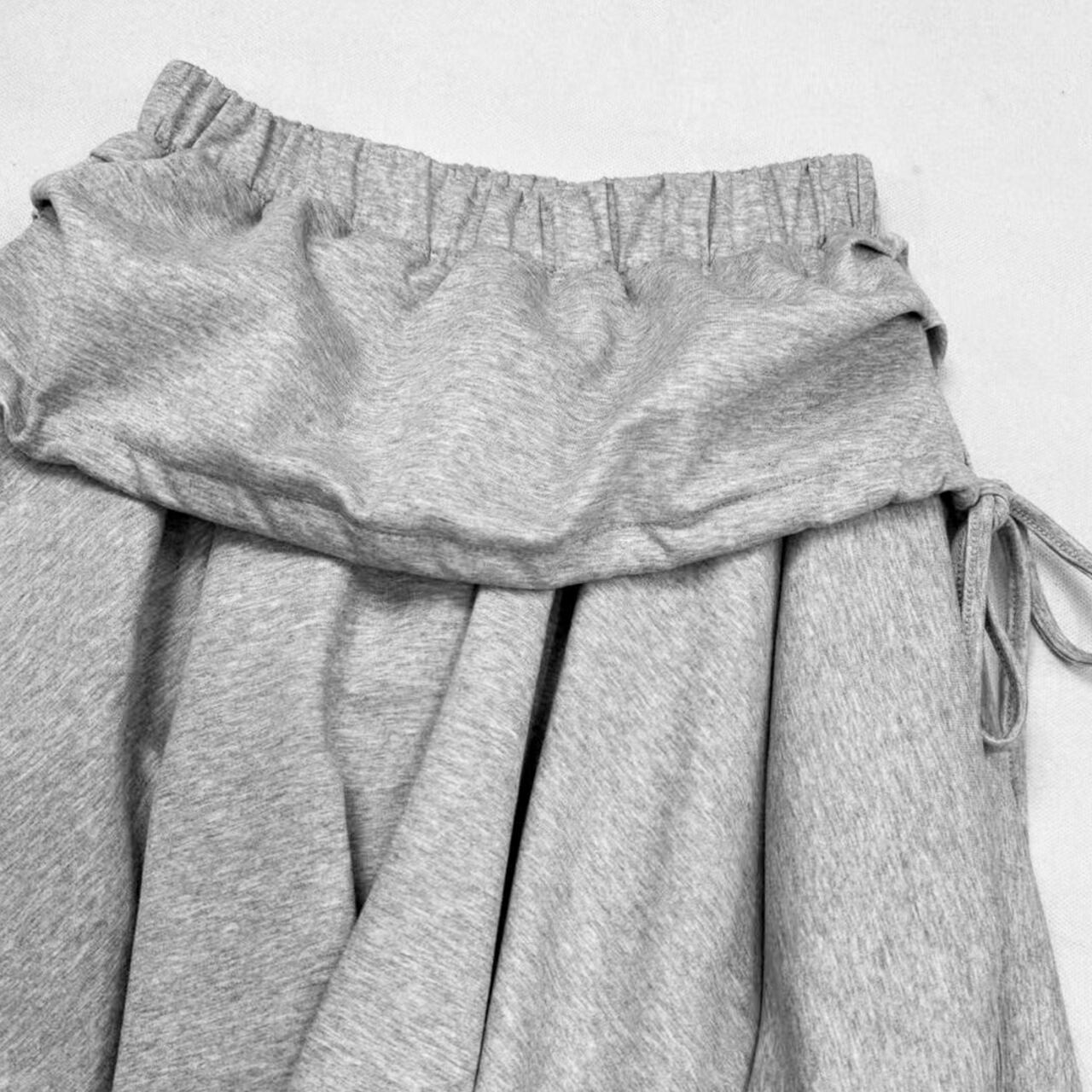 スウェットパンツとスカートを重ね着したようなデザインのパンツ。