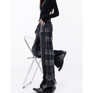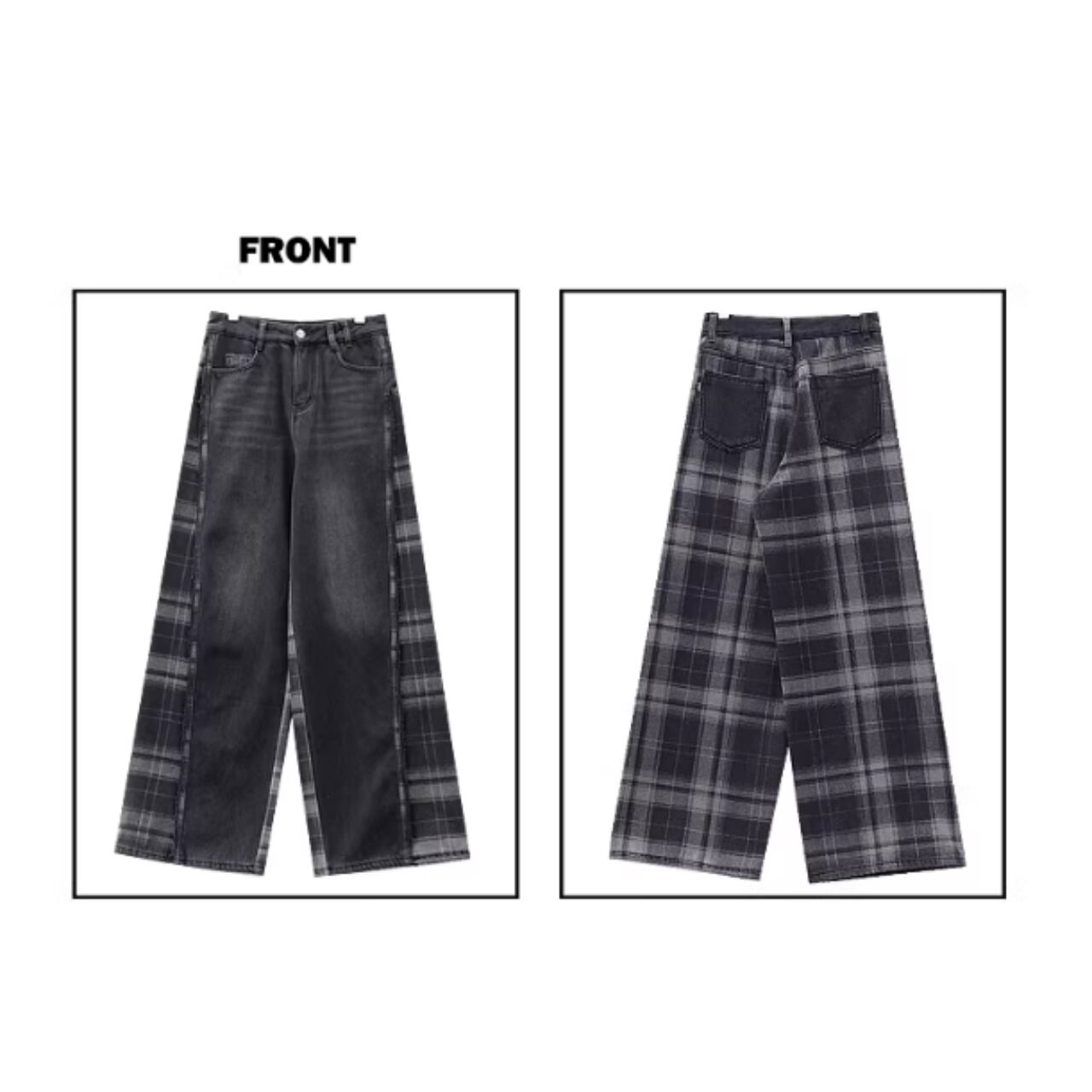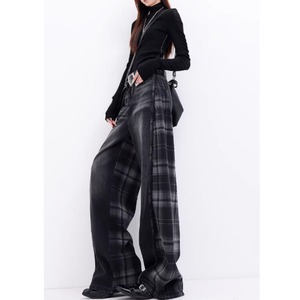 Plaid wide denim jeans E7103