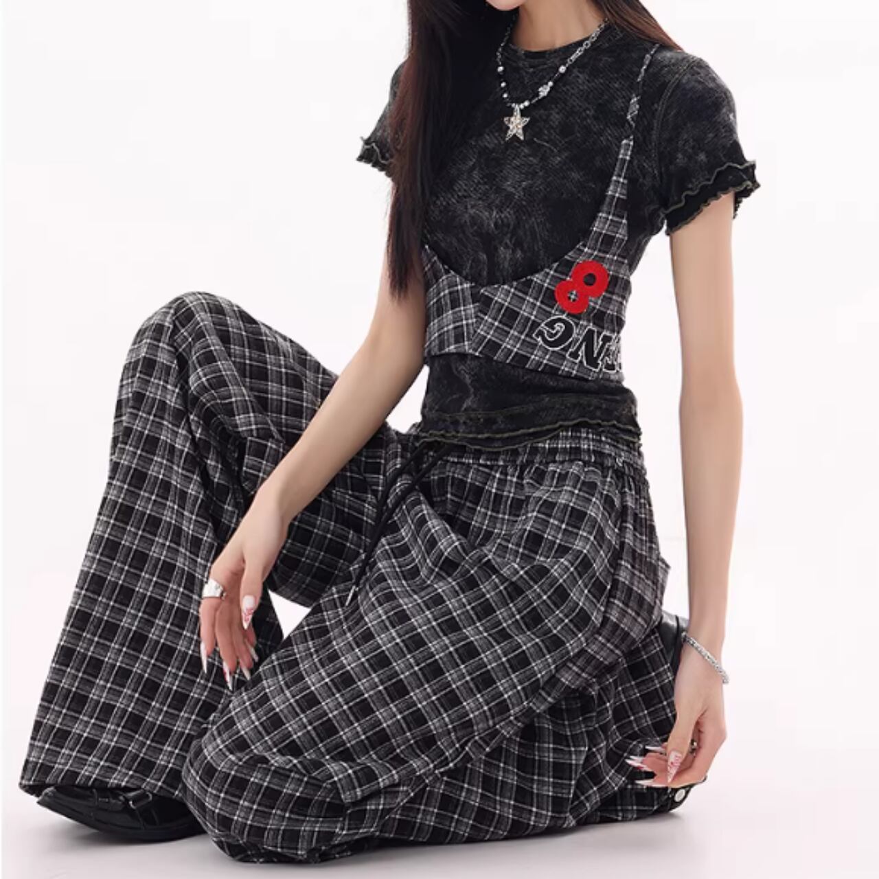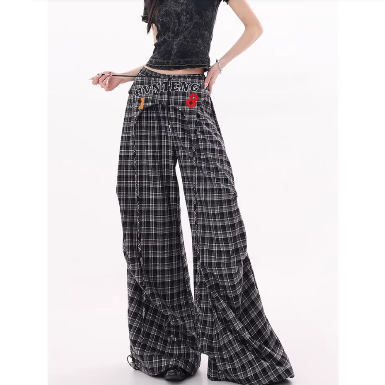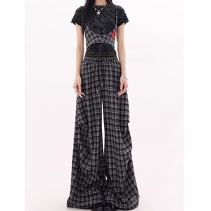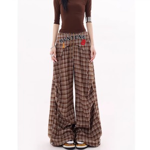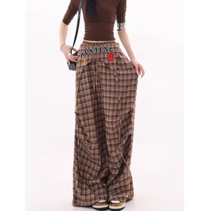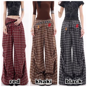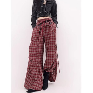 Plaid wide pants E7110