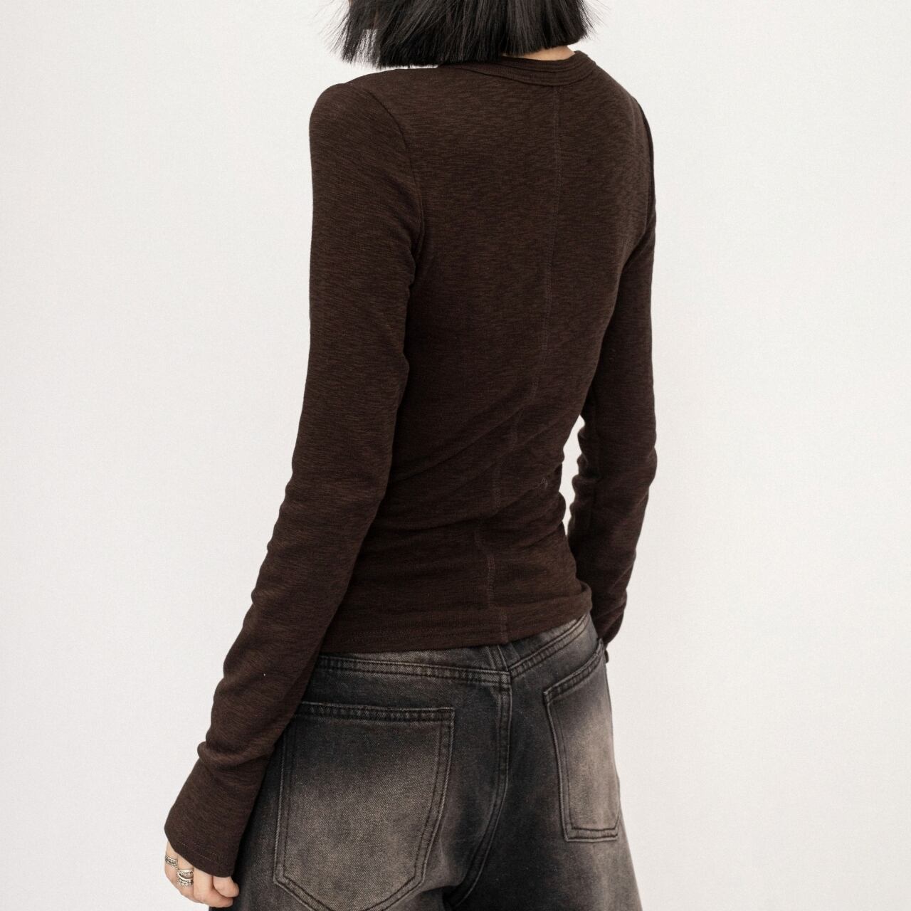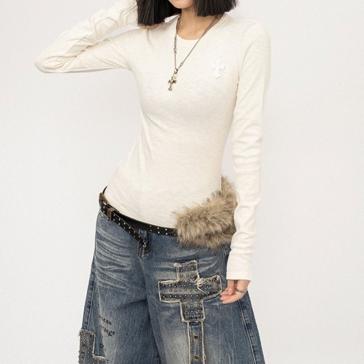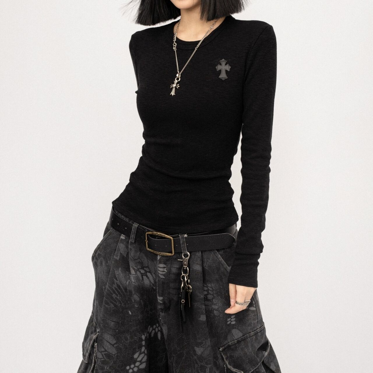 洗練されたクロスモチーフが特徴のスリムフィットトップス。