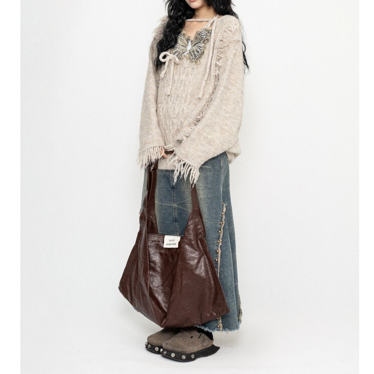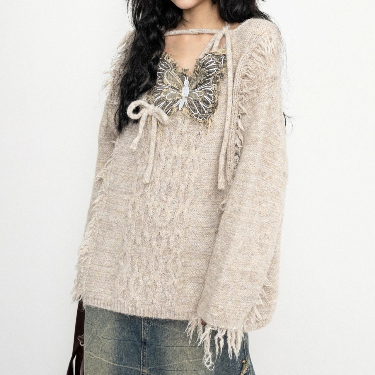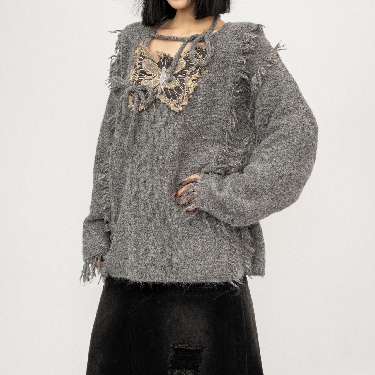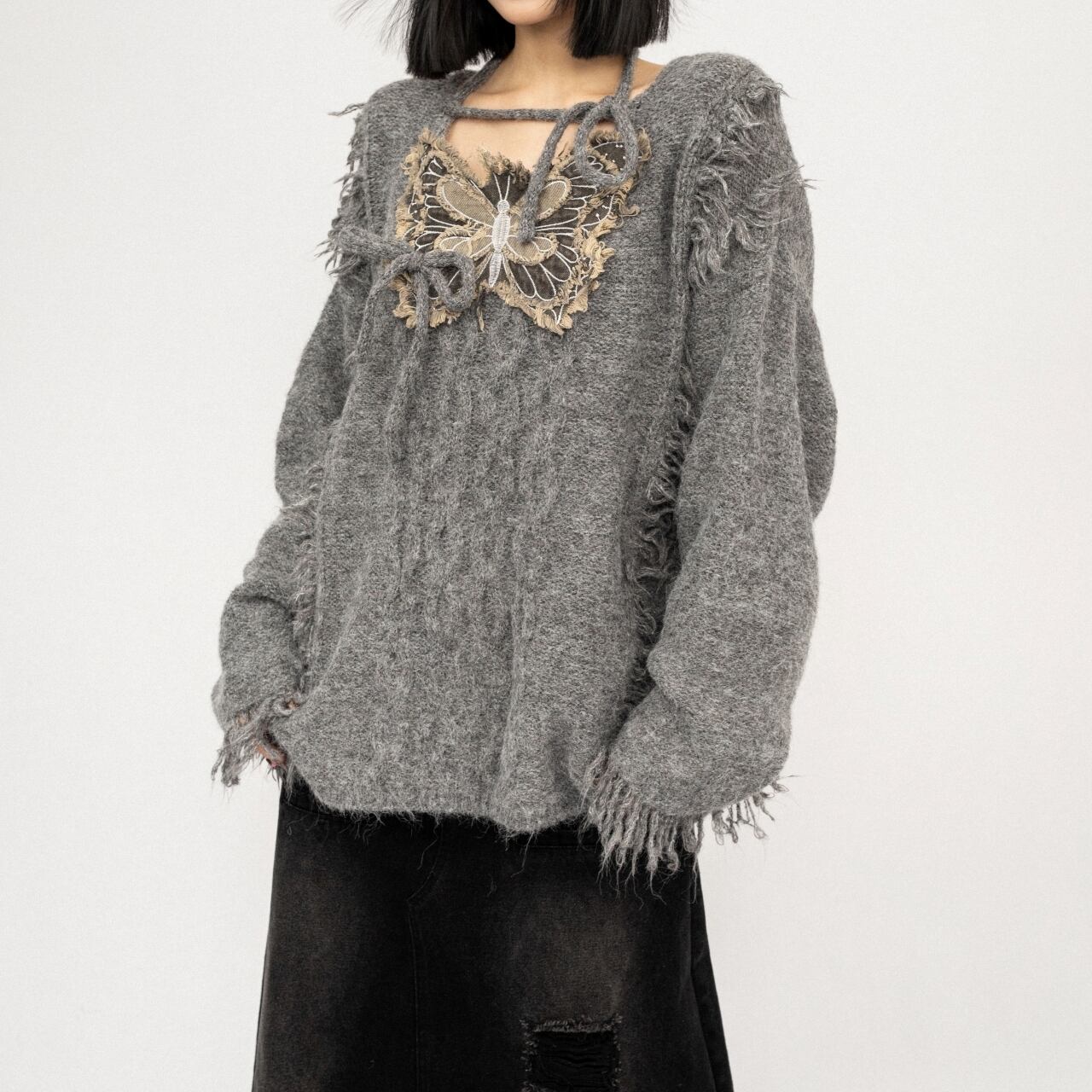 バタフライモチーフが目を引くオーバーサイズのスウェット。